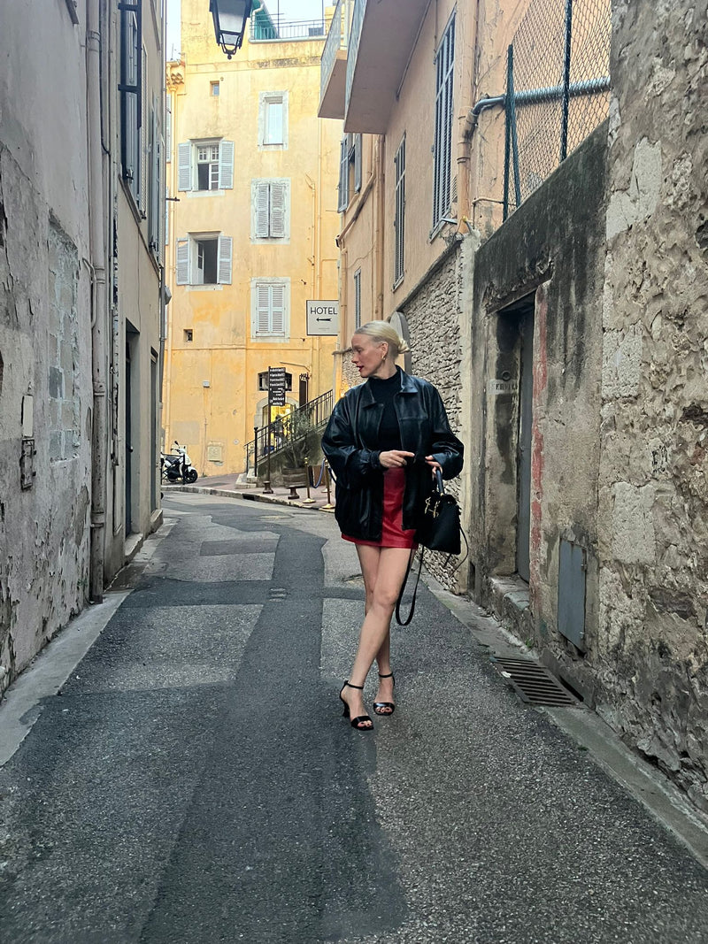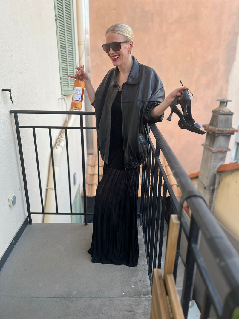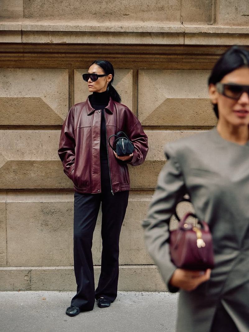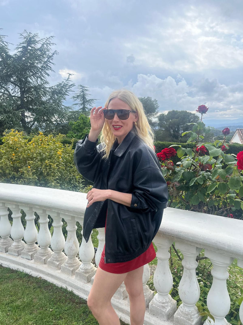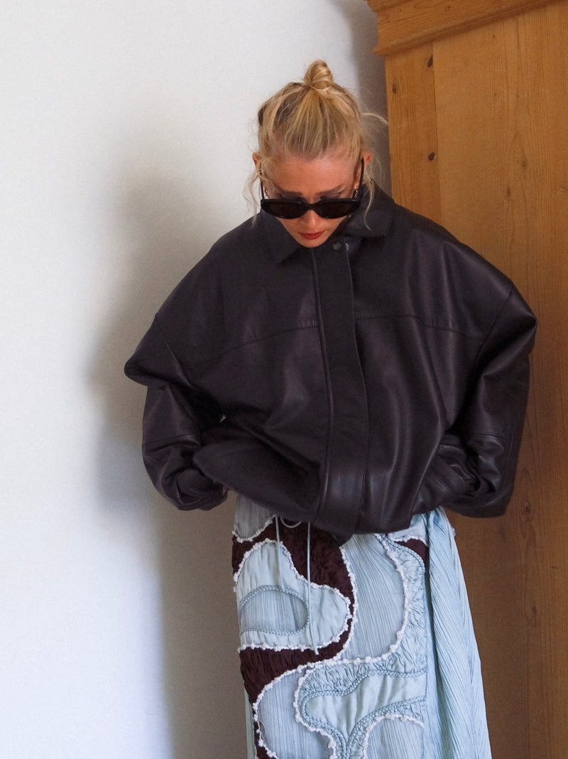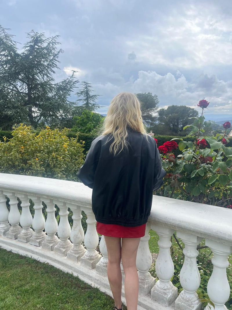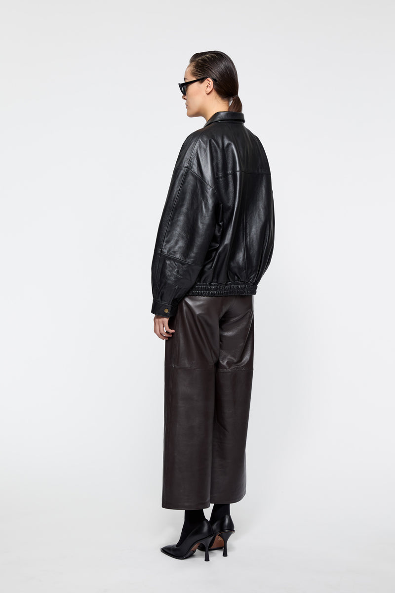 Joy is a bomber styled jacket handcrafted by our very best craftsmen in premium black lamb nappa leather. The dropped shoulder, loose fit and elastic waistband is both flattering and versatile. Match your Joy Jacket with everything from straight trousers to a slip-on dress.