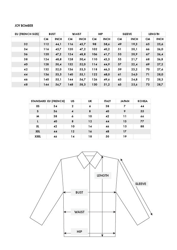 Size Chart Joy Bomber