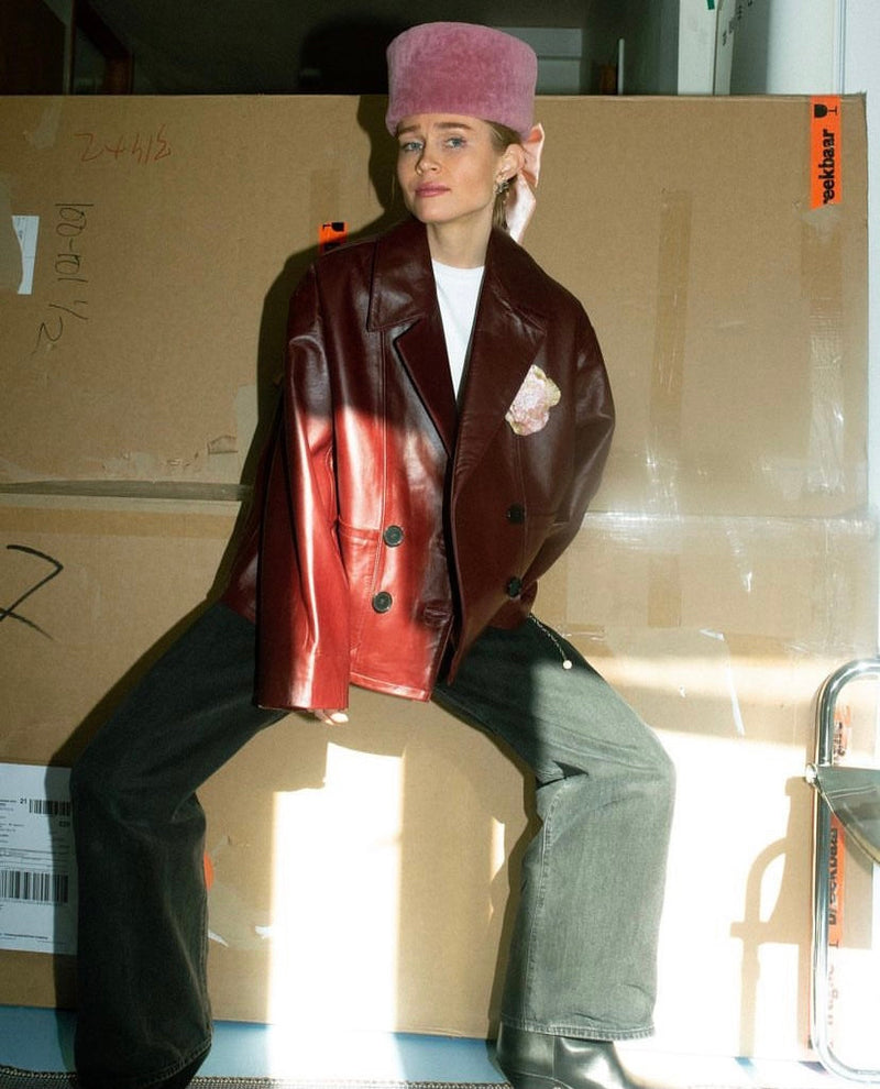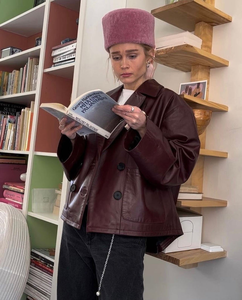 Each Onar Studios Coat follows a narrative leading back over centuries. Handcrafted by craftsmanship masters who follow our family tradition. ROSSY is a cropped leather jacket handcrafted by our craftsmanship masters of premium burgundy lamb nappa leather and is cut for a loose fit. A front button fastening with two side pockets. ROSSY will make a stunning addition to your everyday wardrobe rotation. Wear it with everything from tailored pants to slinky midi dresses.