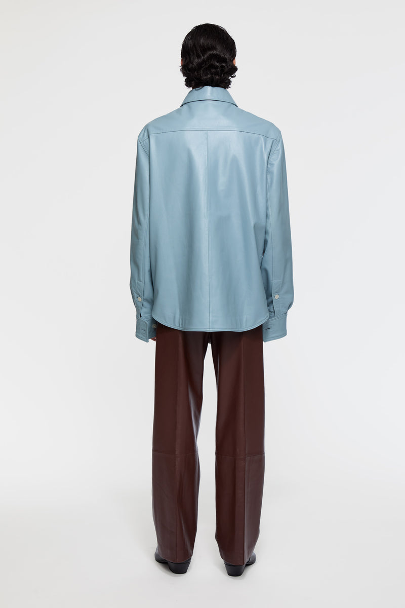 Size GuideThe Laurence shirt, a sophisticated classic button-up shirt with luxurious material. Expertly handcrafted in Greece, this shirt is made from premium ecological leather, offering a sumptuously soft feel and a rich, deep hue. Fully lined with 100% viscose, it provides exceptional comfort and a smooth drape. Designed with a clean, relaxed silhouette, it features a traditional collar, chest pocket, button-front closure, curved hemline and buttoned cuffs for a refined finish. The Lucien Shirt is a versatile layering piece that seamlessly transitions from daywear to an elevated evening look, embodying understated luxury for the season ahead.