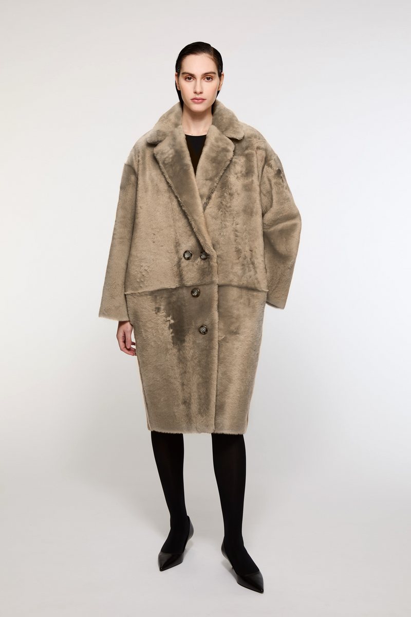 Aurora coat is a longline winter essential designed in an oversized silhouette that falls below the knee. Finished with front button fastening and practical side pockets, it delivers timeless comfort and understated luxury throughout the coldest months.