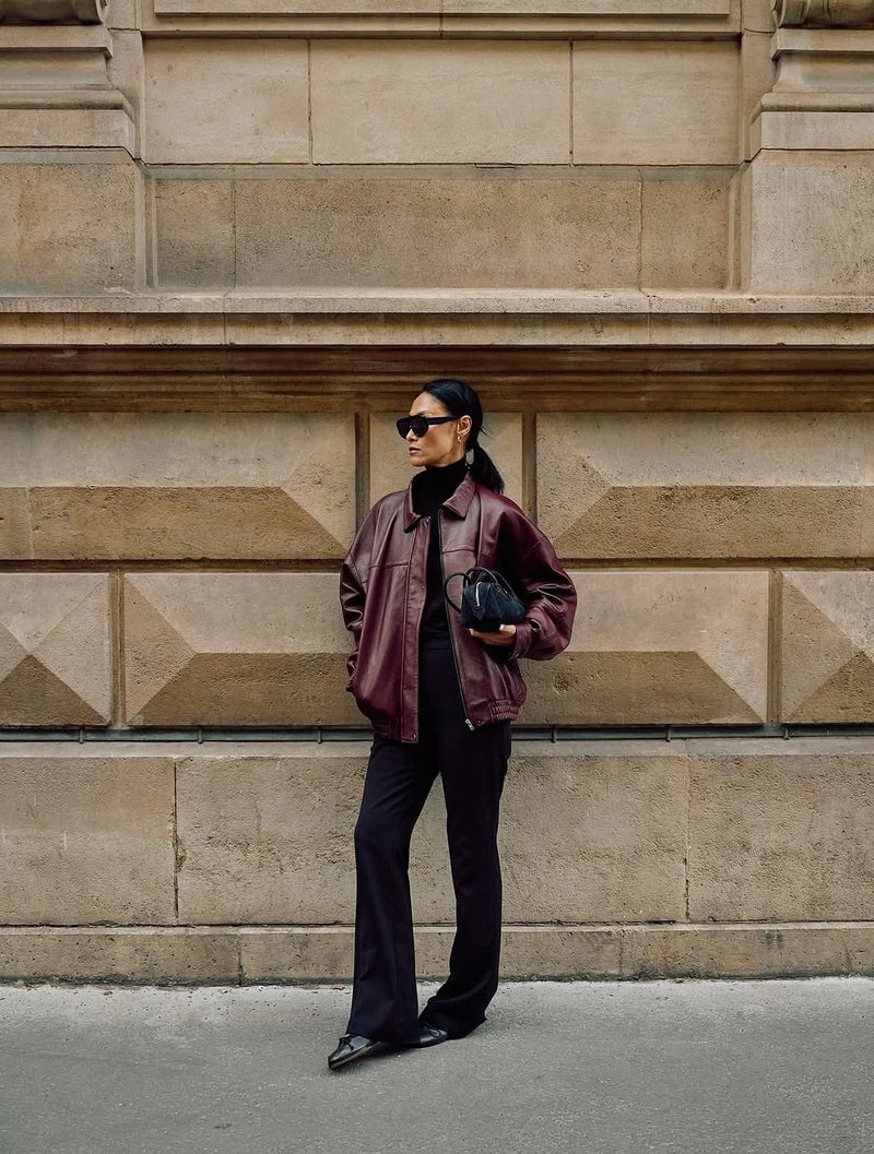 Joy is a bomber styled jacket handcrafted by our very best craftsmen in premium black lamb nappa leather. The dropped shoulder, loose fit and elastic waistband is both flattering and versatile. Match your Joy Jacket with everything from straight trousers to a slip-on dress.