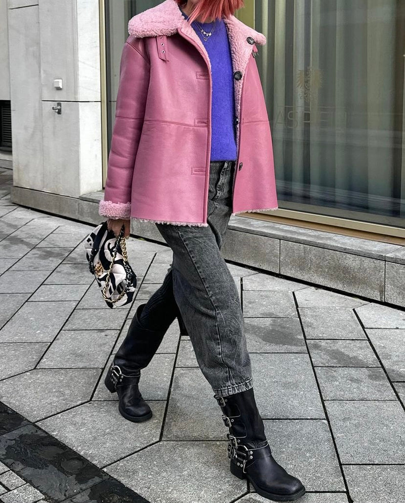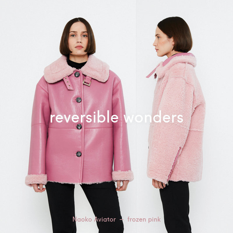 1 つで 2 つのスタイル: Naokoは、やや大きめのリバーシブル シアリング アビエイターです。ボタン留めと、襟に留めるためのバックルが付いています。サイド シーム ポケットと袖にジッパーが付いています。ハンドメイドで長持ちし、時が経つほどに良くなります。NAOKOは、テーラード パンツからセクシーなミディ ドレスまで、あらゆるものと合わせられる万能なアイテムです。シックでさりげなくまとめられたルックの一部として着用してください。