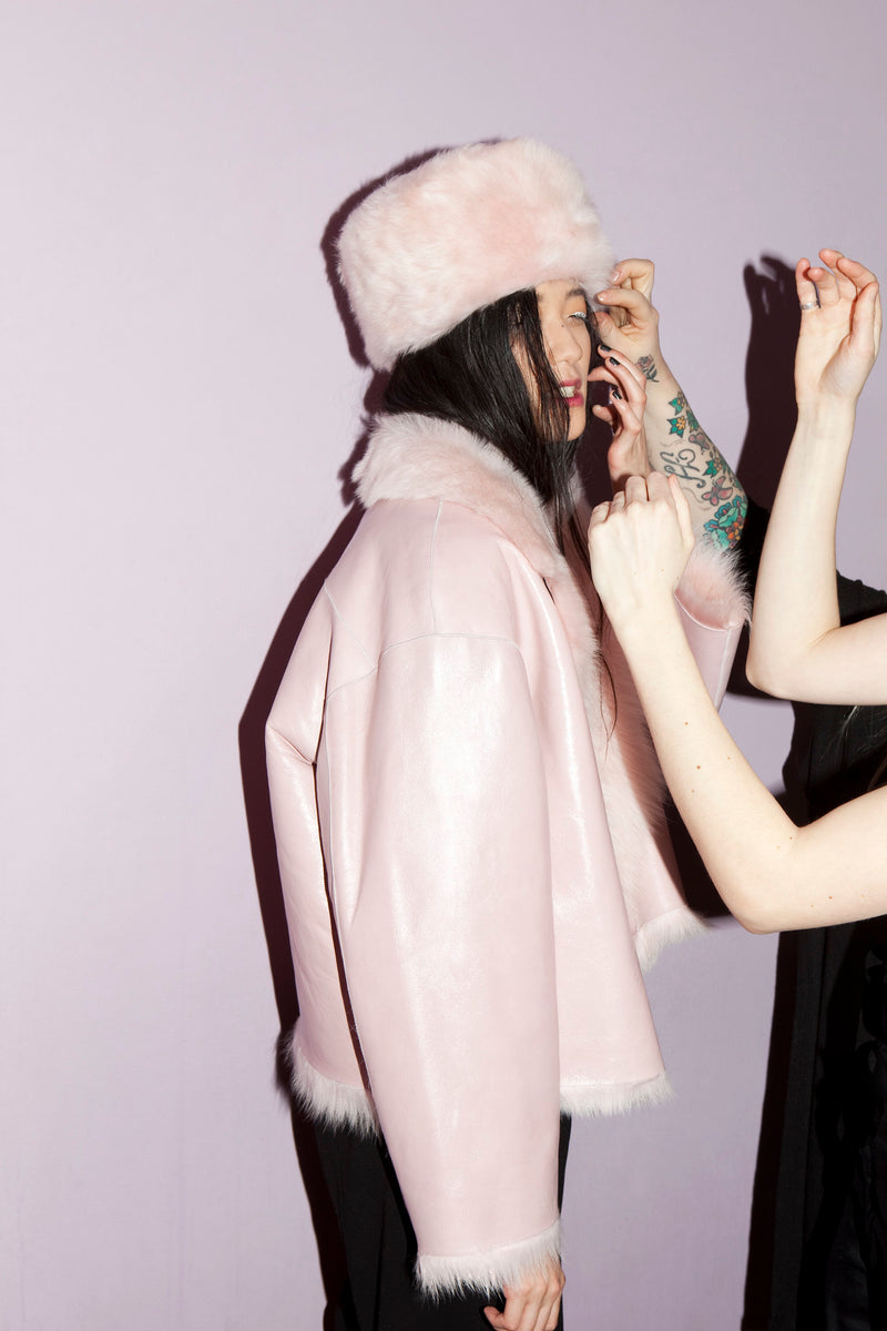 Each ONAR Coat follows a narrative leading back over centuries. Handcrafted by our craftsmanship masters who follow ourfamily tradition, Kristina is a cropped reversible jacket made of rosewater Toscana shearling. Alternate between the lightly glossed leather and fluffy shearling sides. A loose fit jacket with button fastening and two side pockets. Wear it with everything from tailored pants to slinky midi dresses.