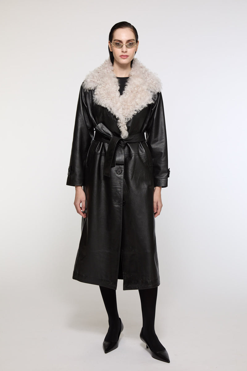 Size GuideTwo coats in one: detachable shearling collar on a lamb nappa leather trench