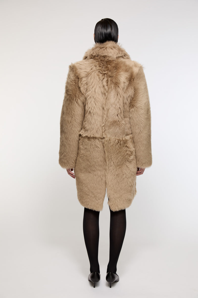 Simone is a luxurious coat crafted from toscana shearling. Its relaxed, universally flattering fit has a longline silhouette that is roomy but not overwhelmingly so. The coat has two side pockets, a soft collar, a slit on the back and button fastening.Wear yours over everything from evening dresses to a simple T-shirt and jeans combination.